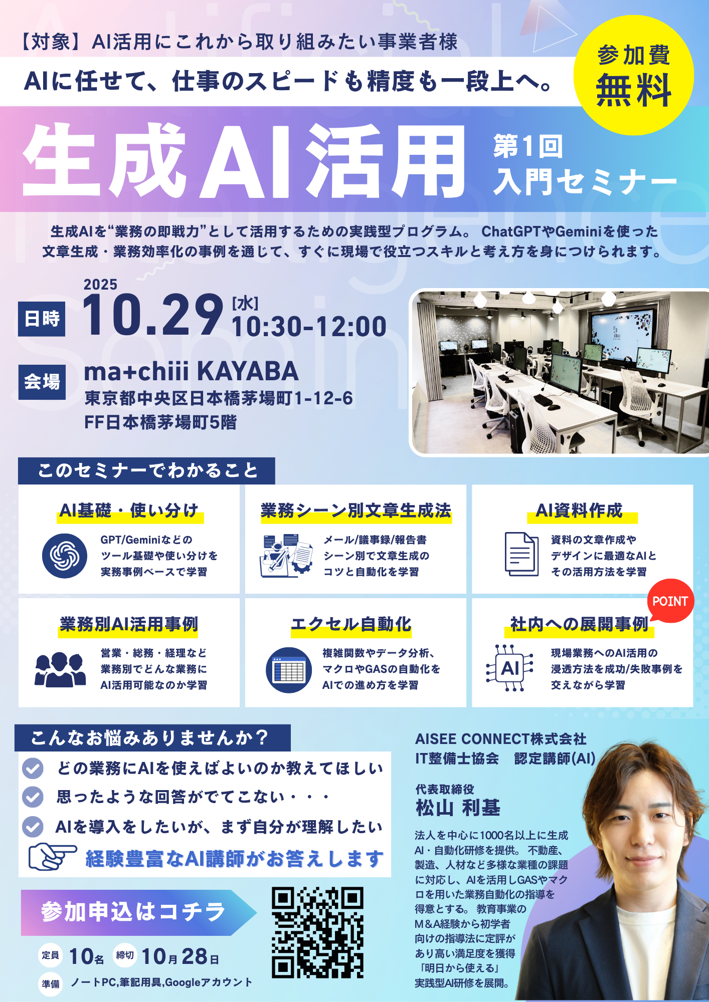 本セミナーは、「AIを業務の即戦力として活用する」をテーマに、
