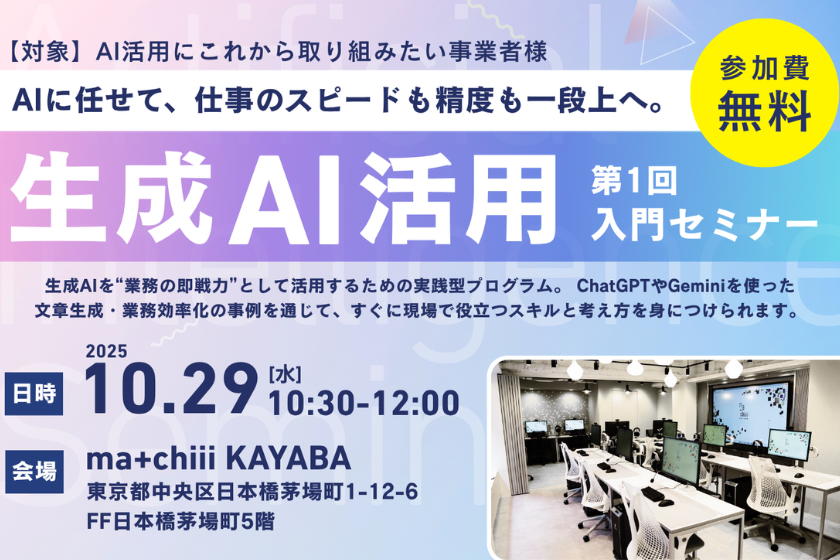 【参加費無料】生成AI活用入門セミナー(東京都中央区)