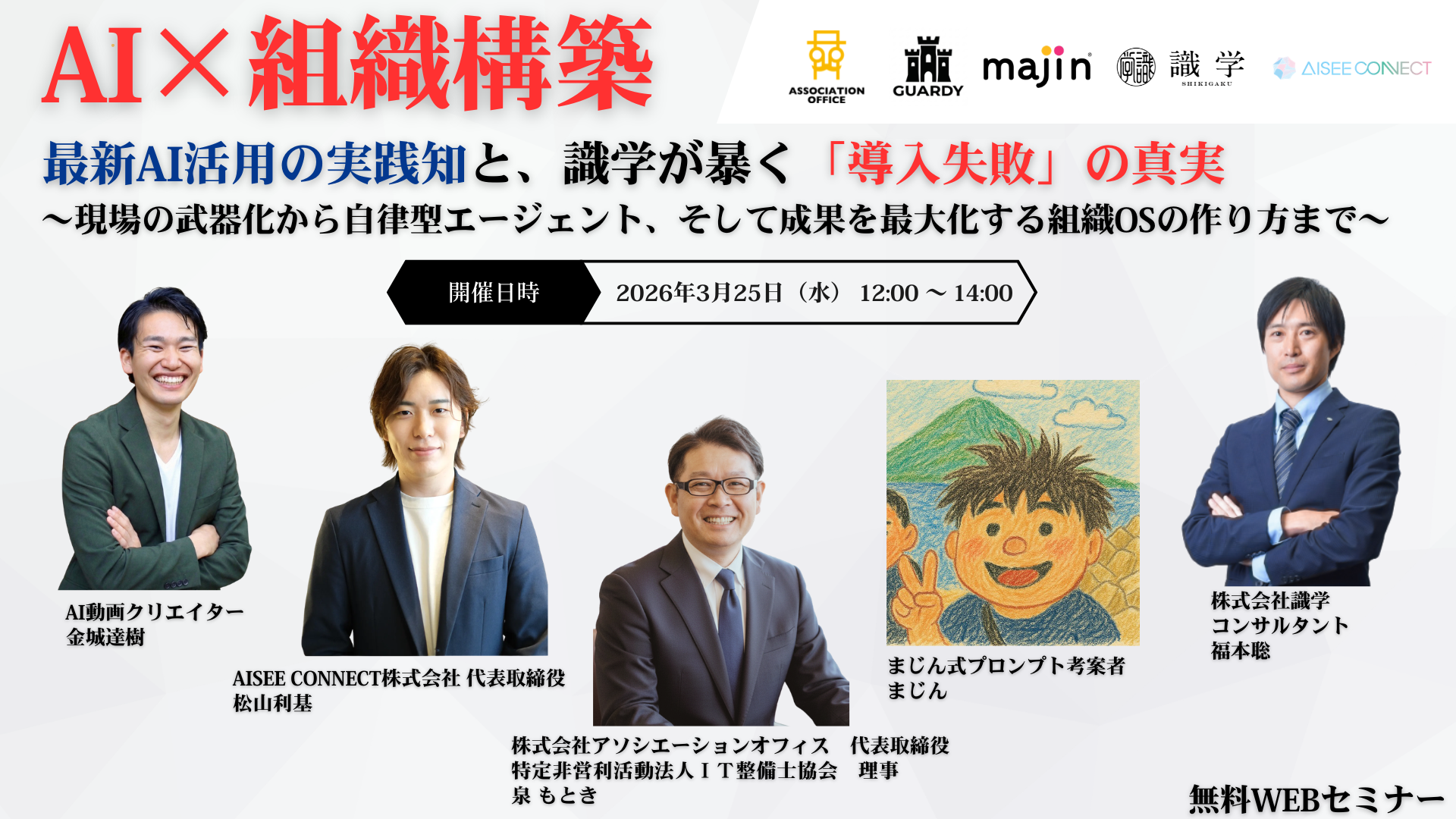AISEE CONNECT株式会社(代表取締役社長:松山 利基、以下「AISEE CONNECT」)は、2026年3月25日に、株式会社識学(https://corp.shikigaku.jp/)が主催する『AI×組織構築』のセミナーにおいて、『実務に定着させる「AI内製化」のワークフロー設計』について登壇いたしました。