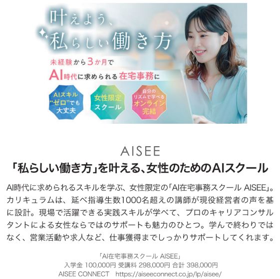 ・無料面談参加で、豪華特典プレゼント!:https://aiseeconnect.co.jp/lp/aisee/