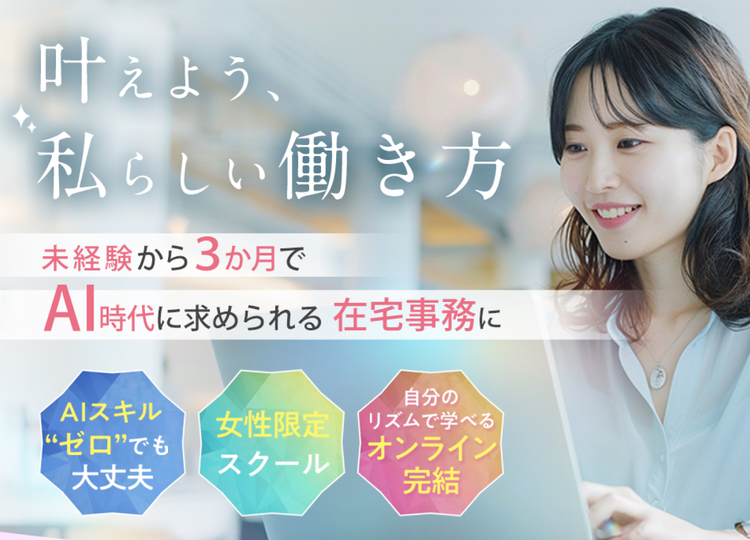 AIと親和性が高い“事務スキル”を習得し、“私らしい働き方”を叶える、国内初のAI事務職専門スクール。